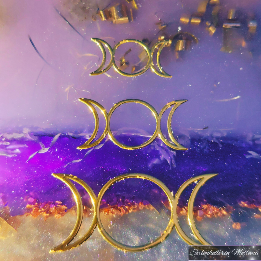 *Symbolisch ist der Mond in der Wicca-Ritualik dargestellt, die die 3 Phasen der Mondgöttin zeigt: die Jungfrau, die Mutter & die alte, weise Frau.