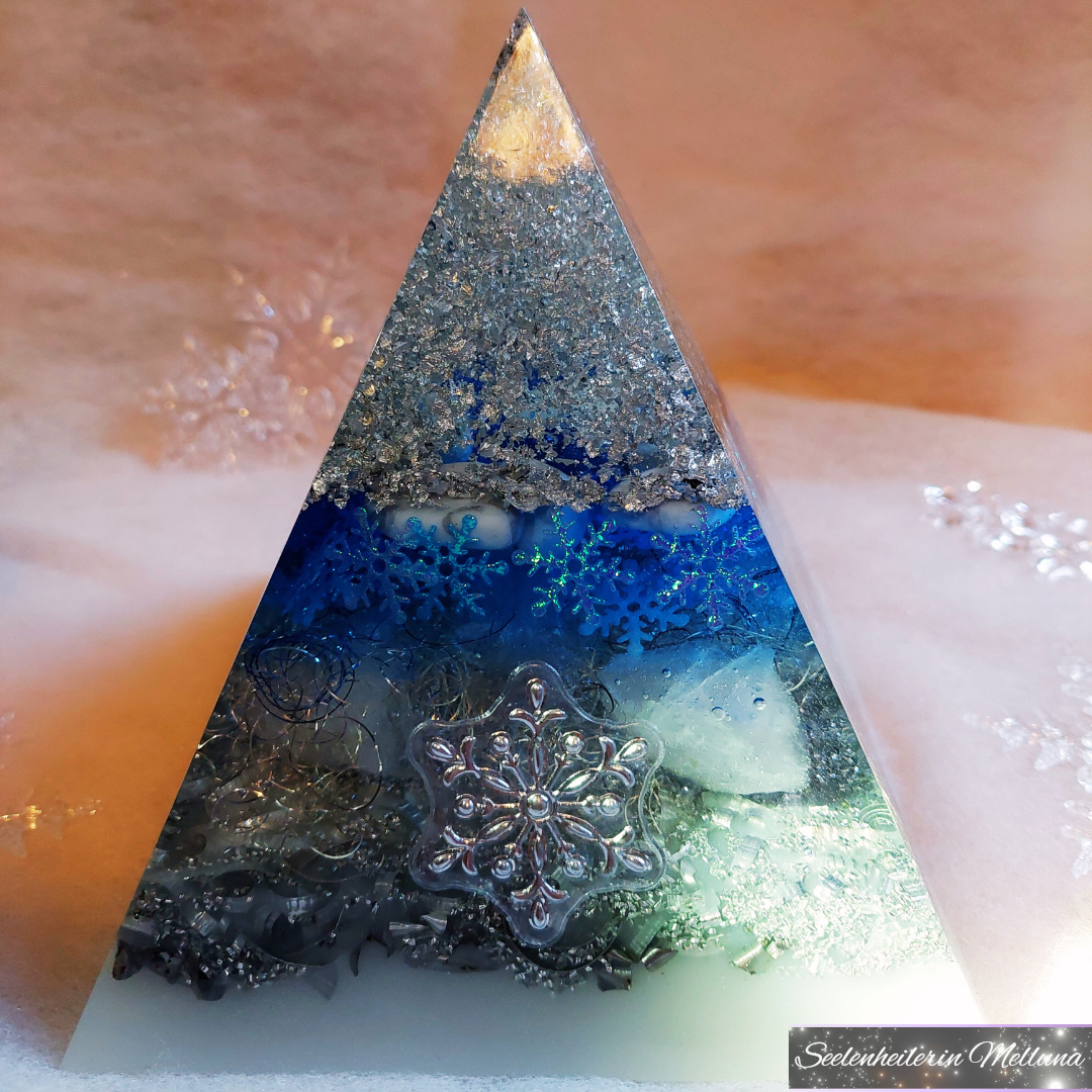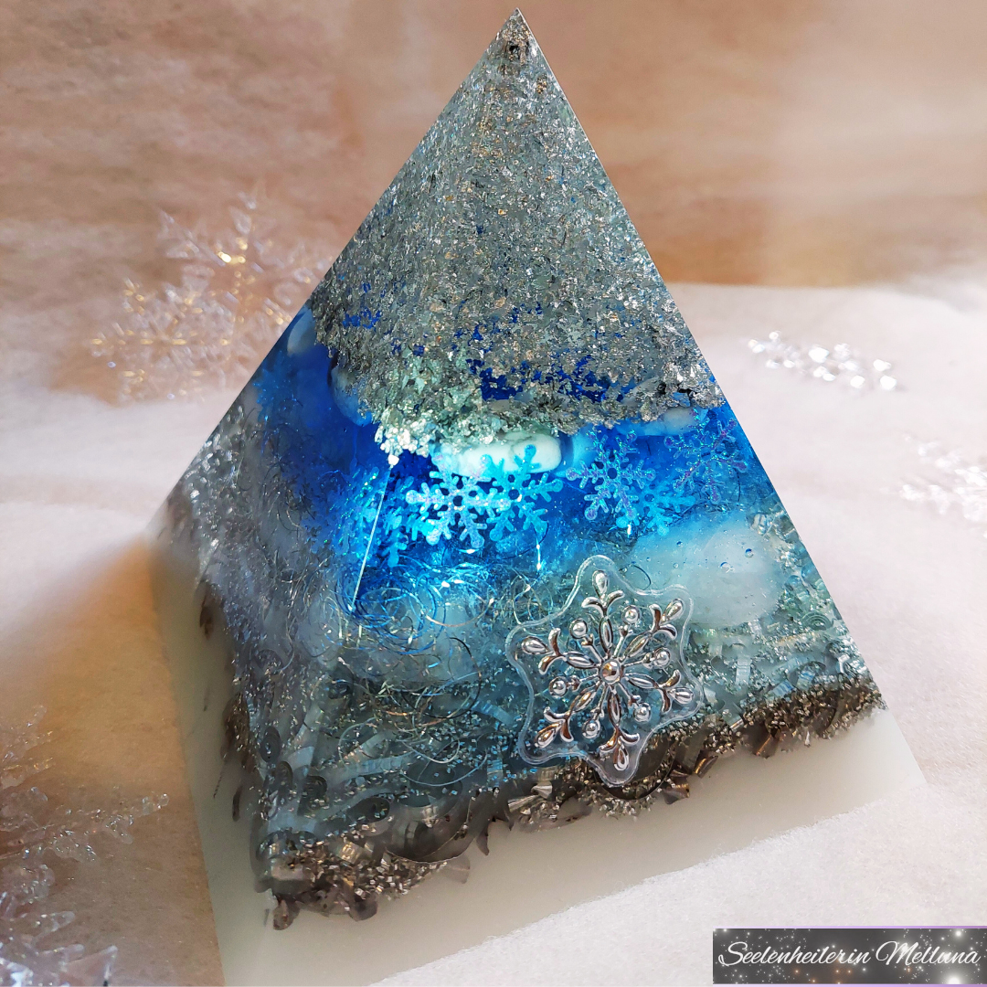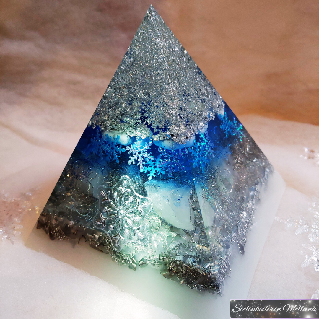Orgonit-Modell: "Eiskristall-Pyramide"Hierin befinden sich u. a. Bergkristall-Rohsteine & Magnesit-Trommelsteine.Breite: 15 x 15 cm; Höhe 16 cm; Gewicht: ca. 1,5 kg - Preis: 149 € inkl. MwSt.